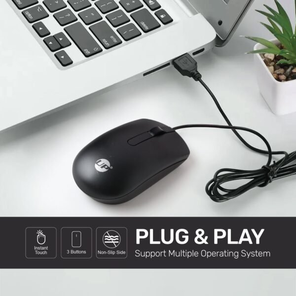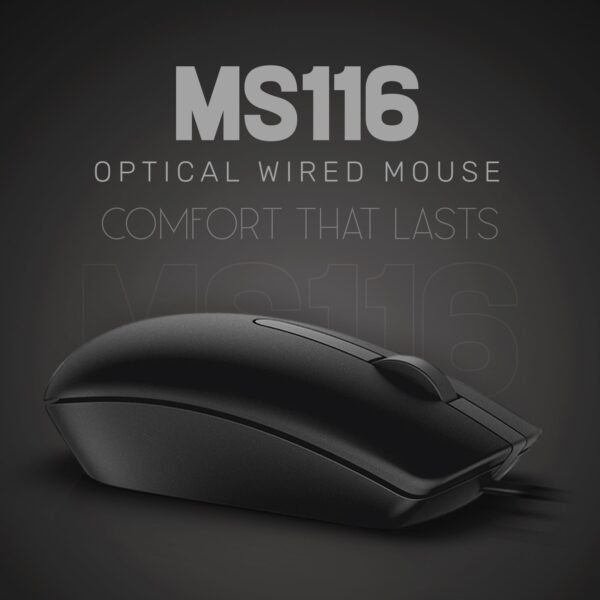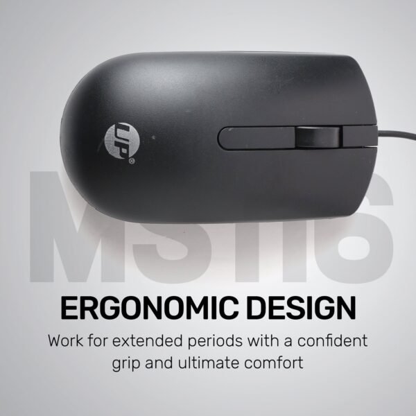 UP MS 116 Wired Mouse, USB Wired Computer Mouse with Ergonomic Design, 1m Length, Optical Corded Mouse for Laptop, PC, Desktop – Black
