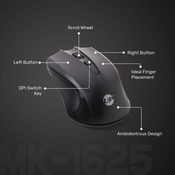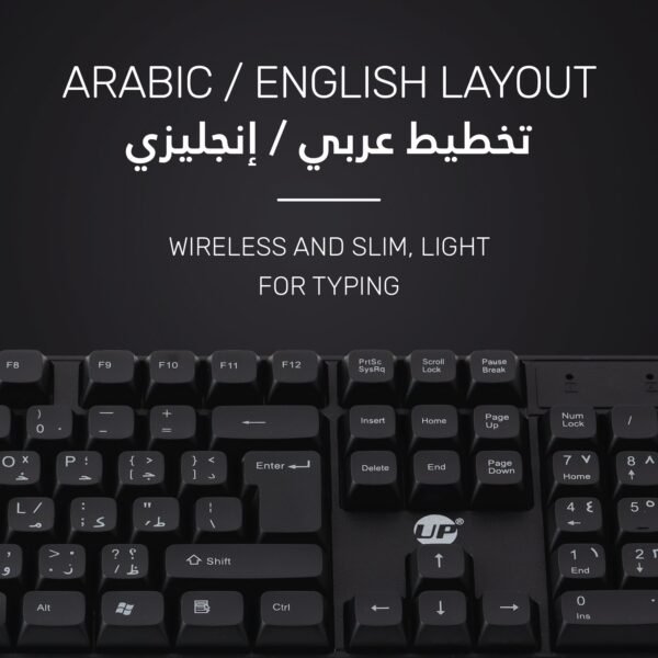 UP Wireless Keyboard and Mouse Combo, Premium USB-C 2.4Ghz Cordless Multimedia Keyboard and 6 Button Optical Dpi Mice with Dual Interface Nano Receiver, English and Arabic Keys